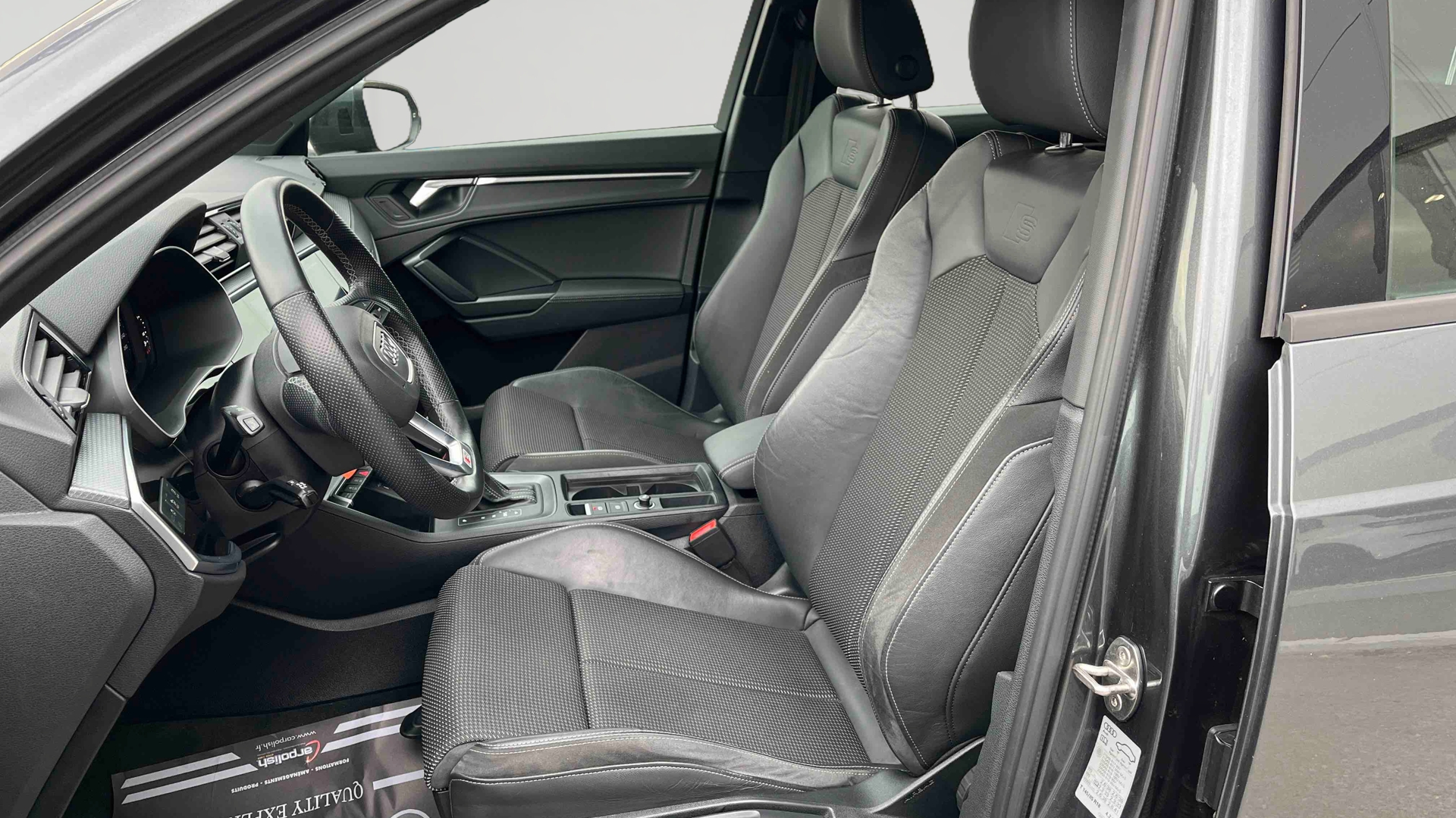 - Pack intérieur estéhtique S line Sellerie Tissu/Similicuir Monopur 550 Tapis AV/AR Noirs avec surpiqûres contrastées Gris Roche Surfaces daccentuation sur la console centralet+poignées intérieures de portières AV Gris Ardoise Frein à main avec surpiqûres contrastées, couleur assortie à celle de l'habitacle Estampillage S line sur le dossier des sièges AV Pédalier et repose-pieds en acier inoxydable Sièges AV sport