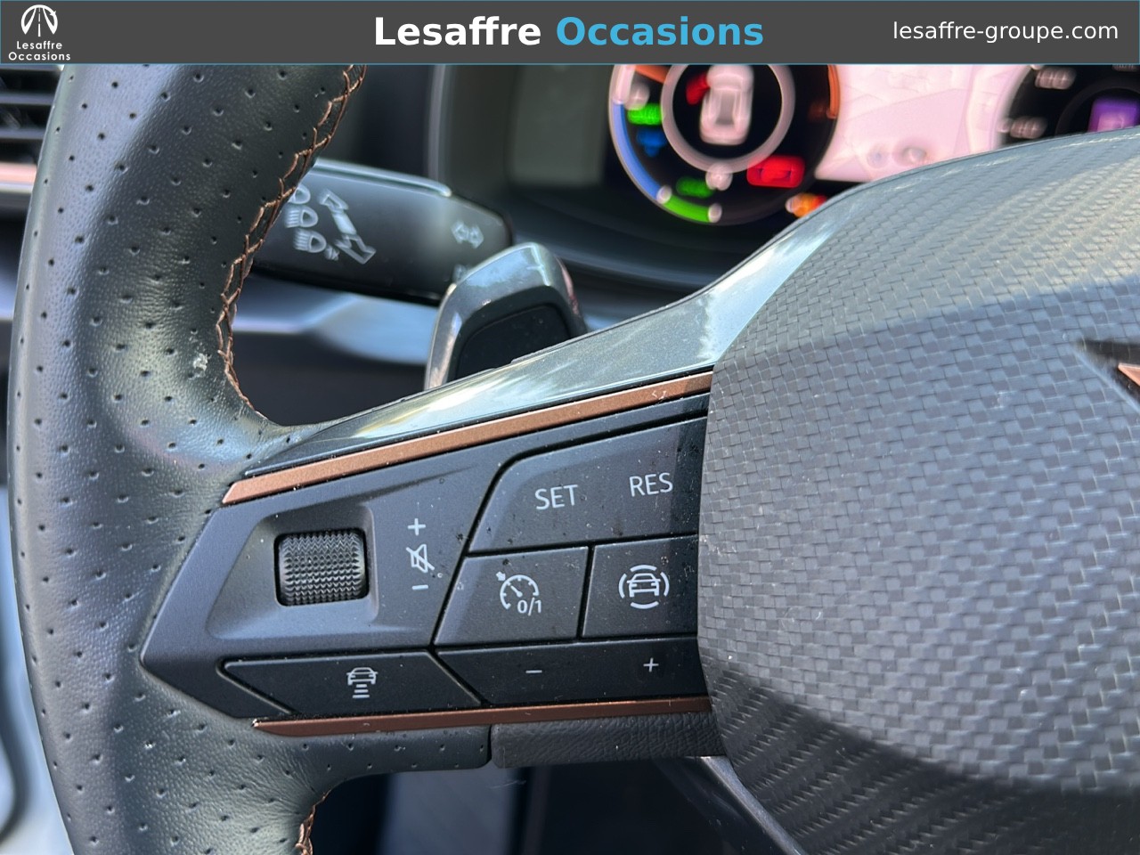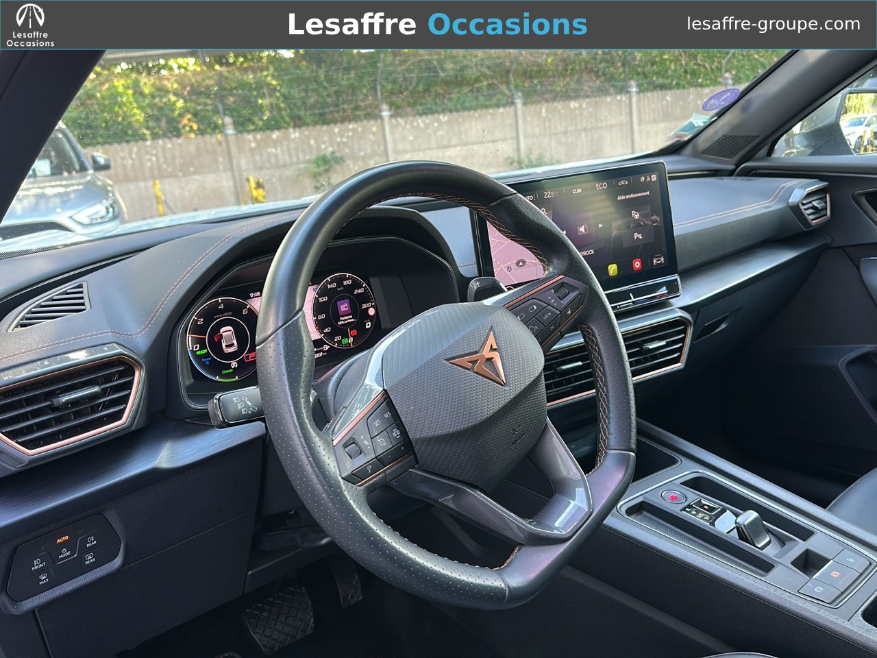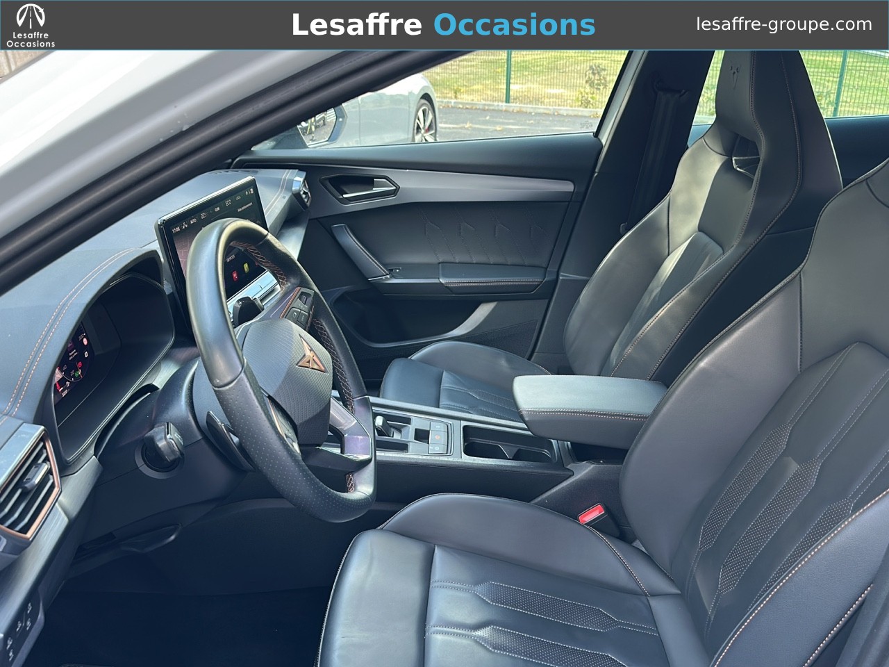 - Pack VZ EXTREME - Pack Intelligent Drive - Pack intérieur Dark Chrome - Design intérieur extreme : Sièges CupBucket textile + TEP Gris Encelade - Sièges AV chauffants, électriques, à mémoire - Planche de bord Gris Encelade surpiquée et contre-portes T Volant Supersports CUPRA avec boutons satellites Pack Drive Assist XL Projecteurs Matrix LED Sièges baquets CUPRA bimatière en suédine et cuir NAPPA Noir Asphalte avec surpiqûres Copper Sièges AV chauffants avec réglage électrique conducteur Contre-portes avec garnissage en similicuir noir et rappels Copper Arches de roues, protections de carrosserie, contour de calandre et coques de rétroviseurs extérieurs peints en Noir Mat Pédalier sport Dark Alu