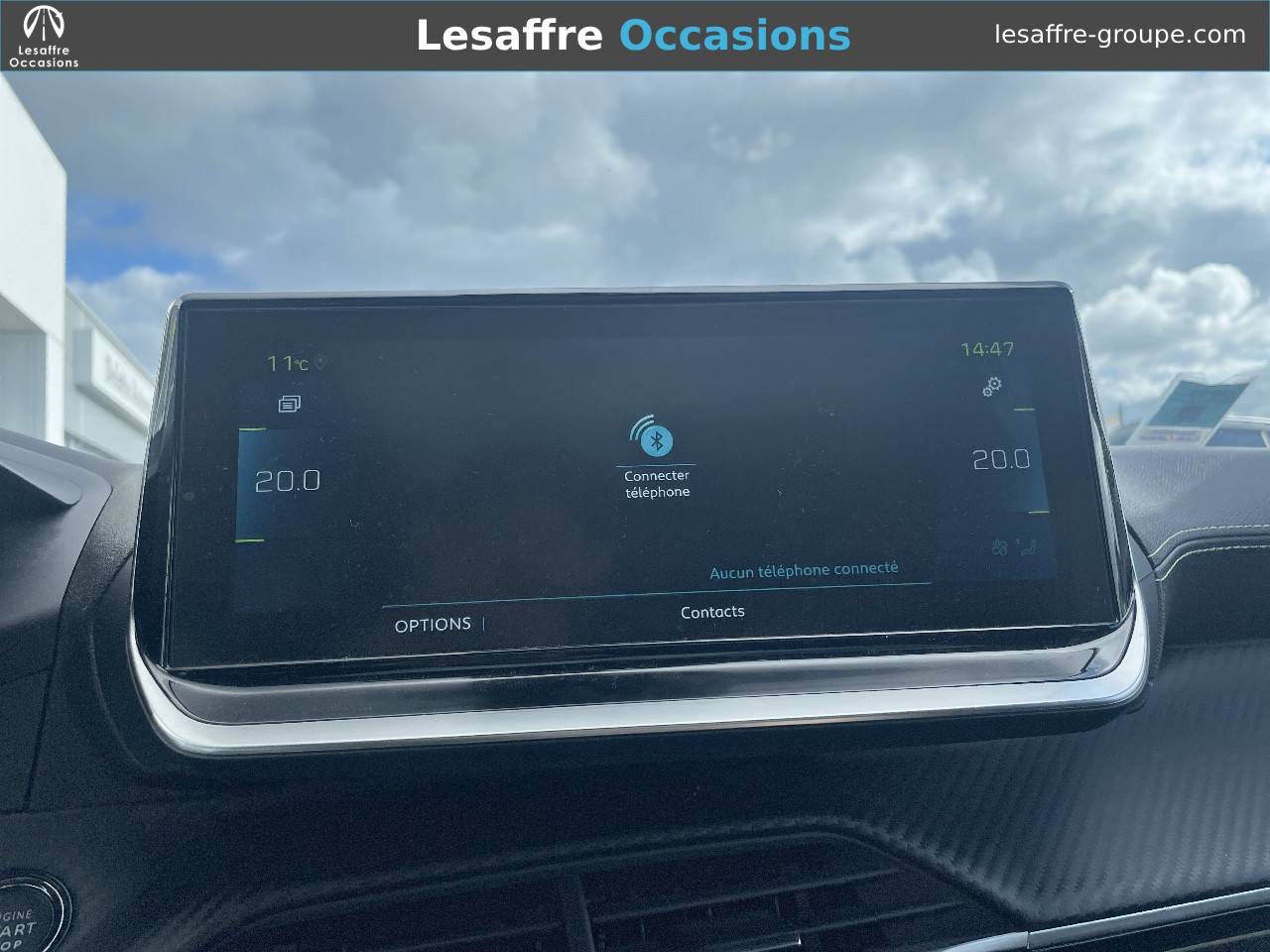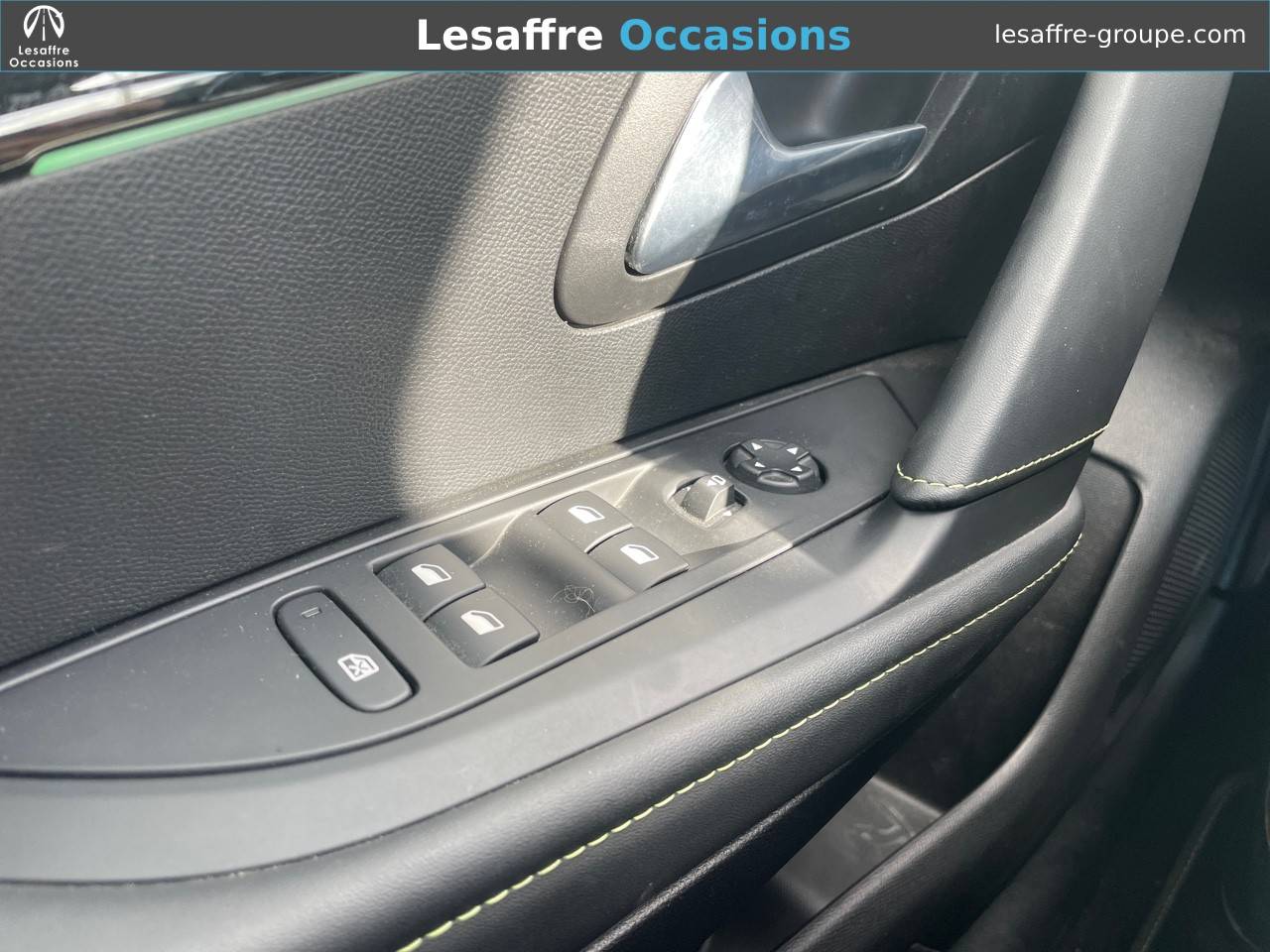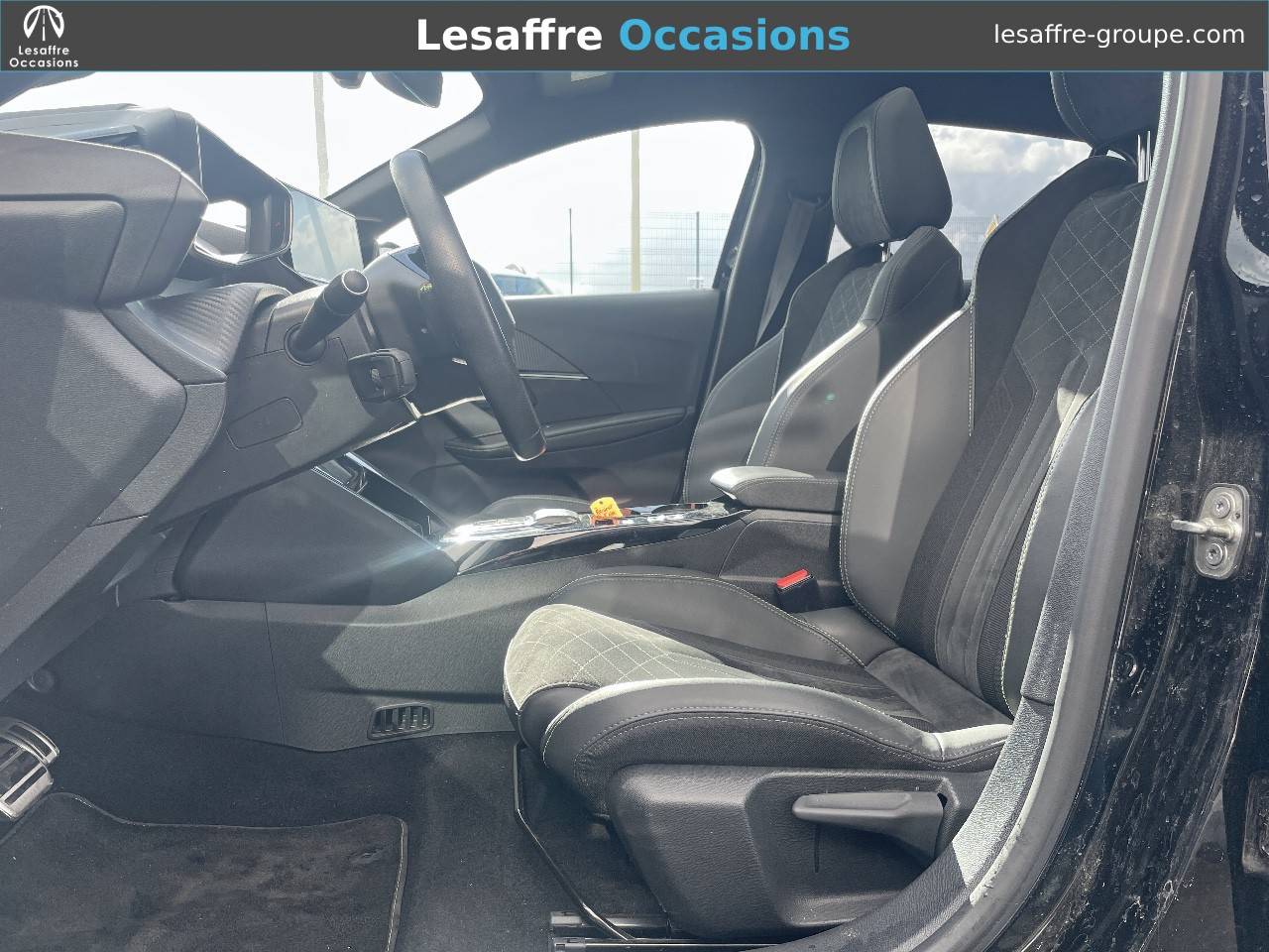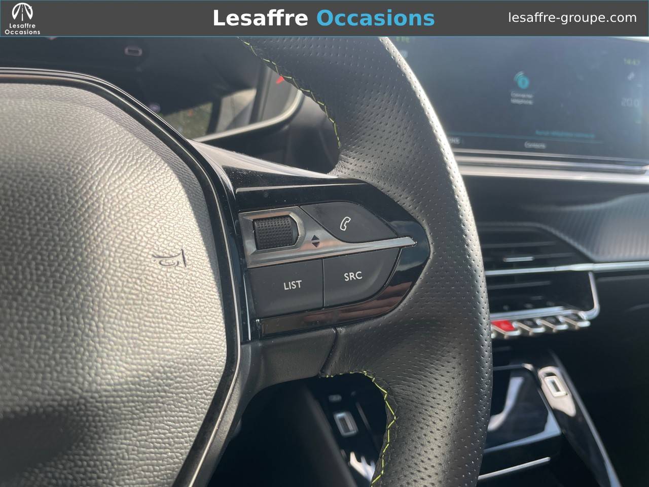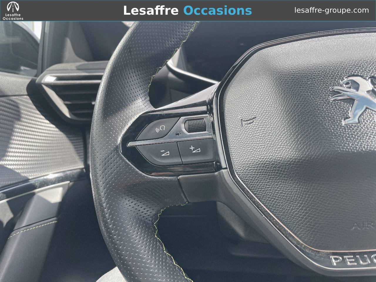 - Volant compact cuir fleur avec laçage vert, Lion chromé et badge GT et commandes multimédia sur volant