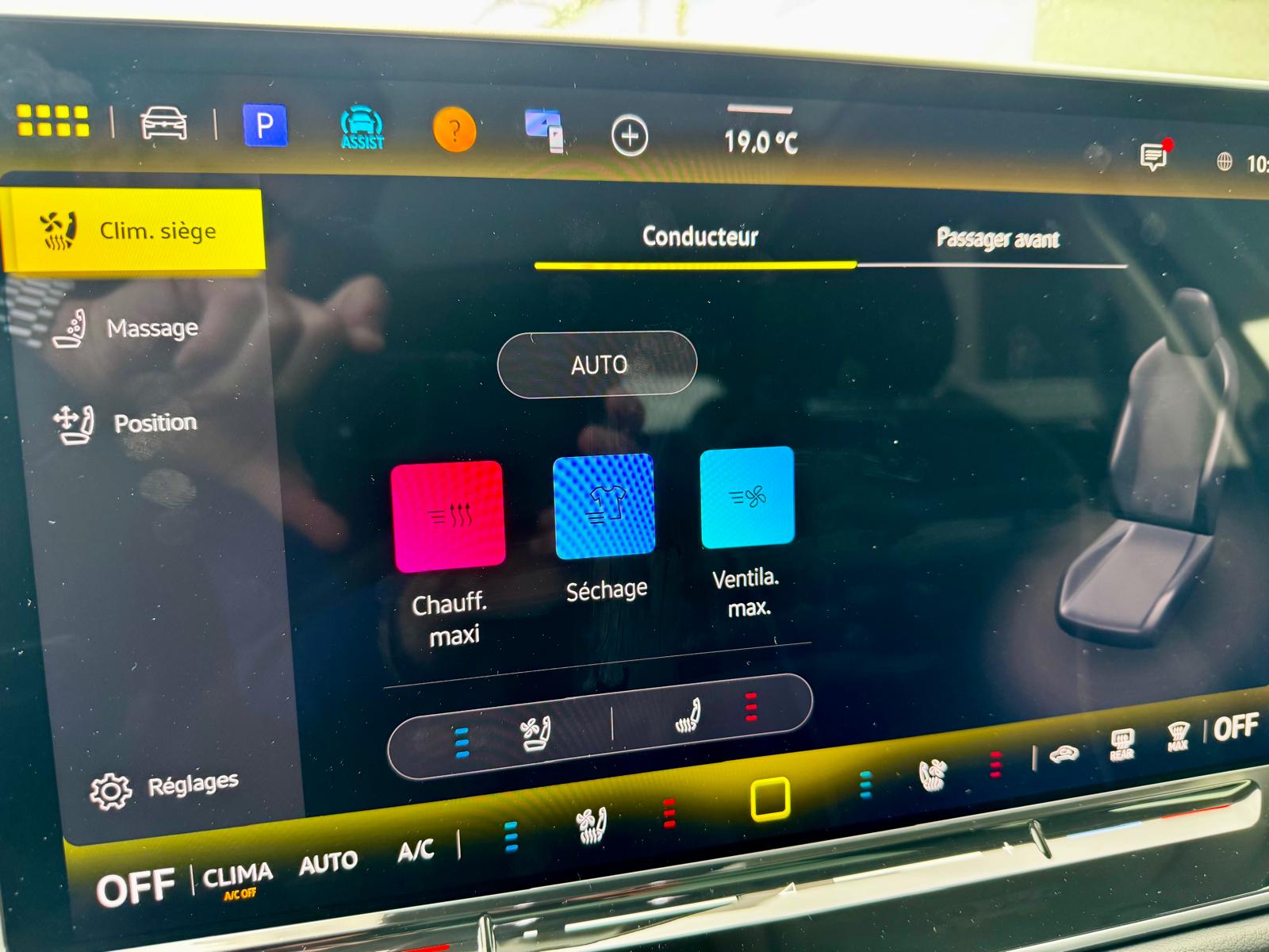 - Sièges AV massants sur 10 points de pression