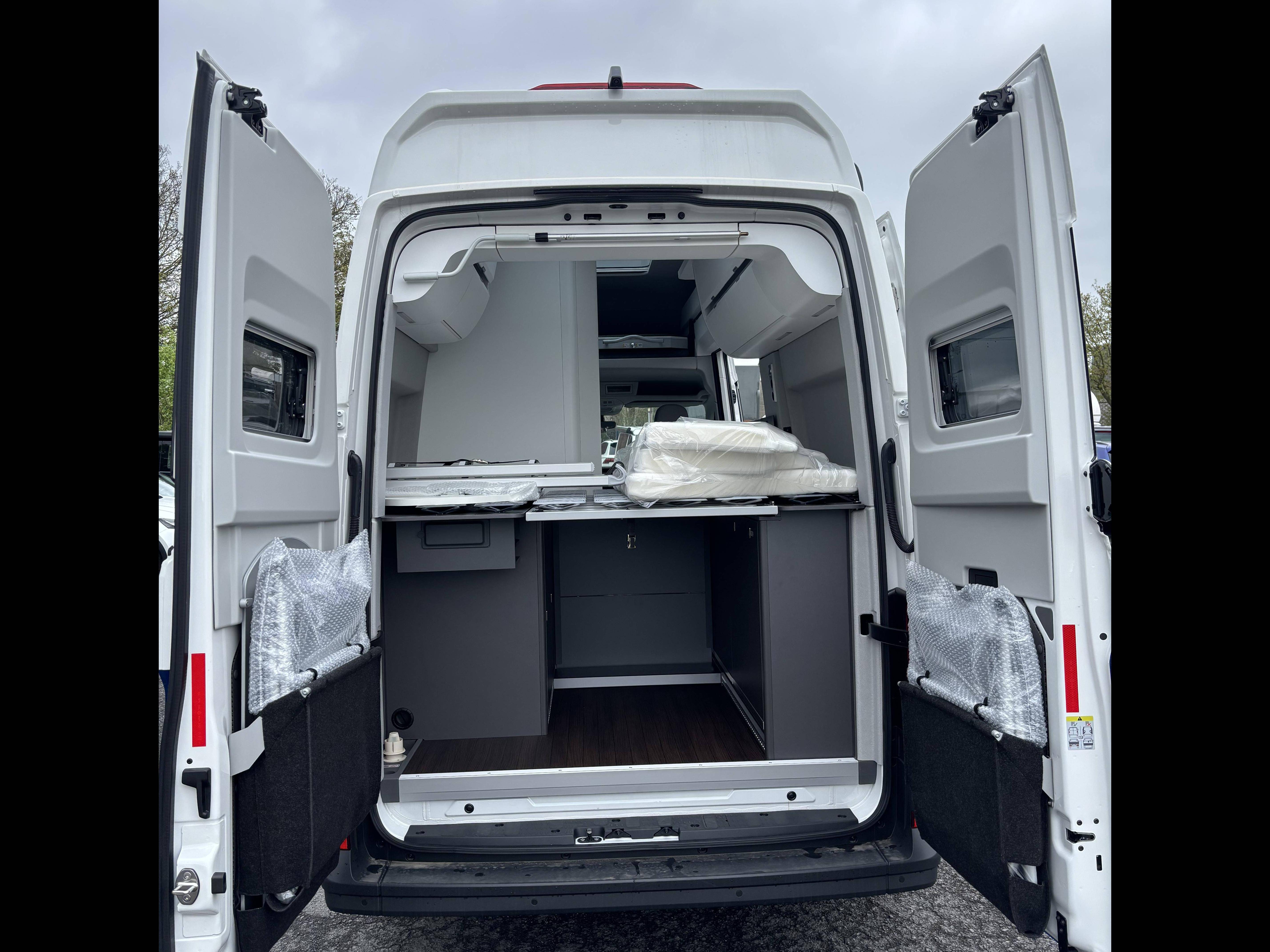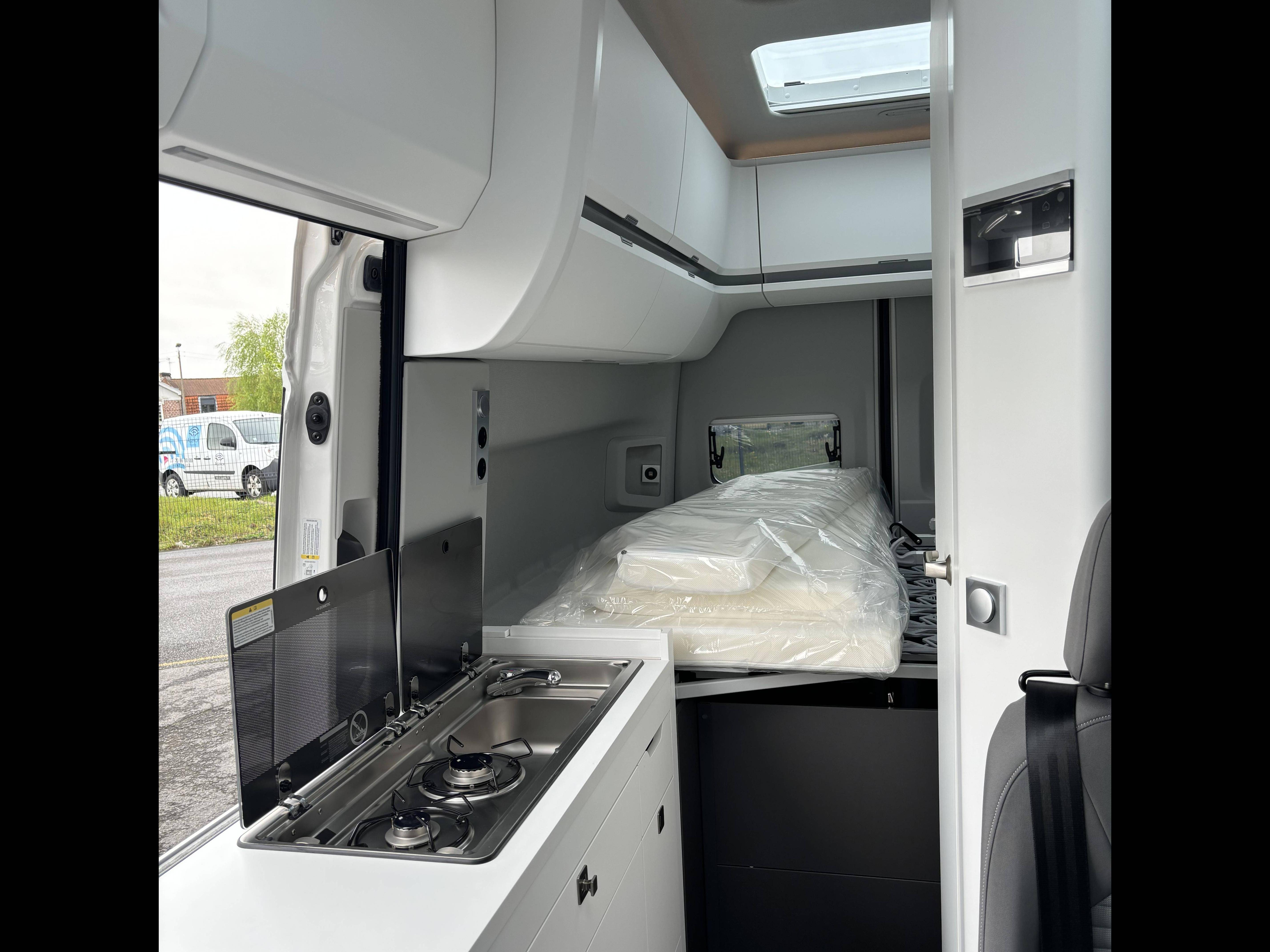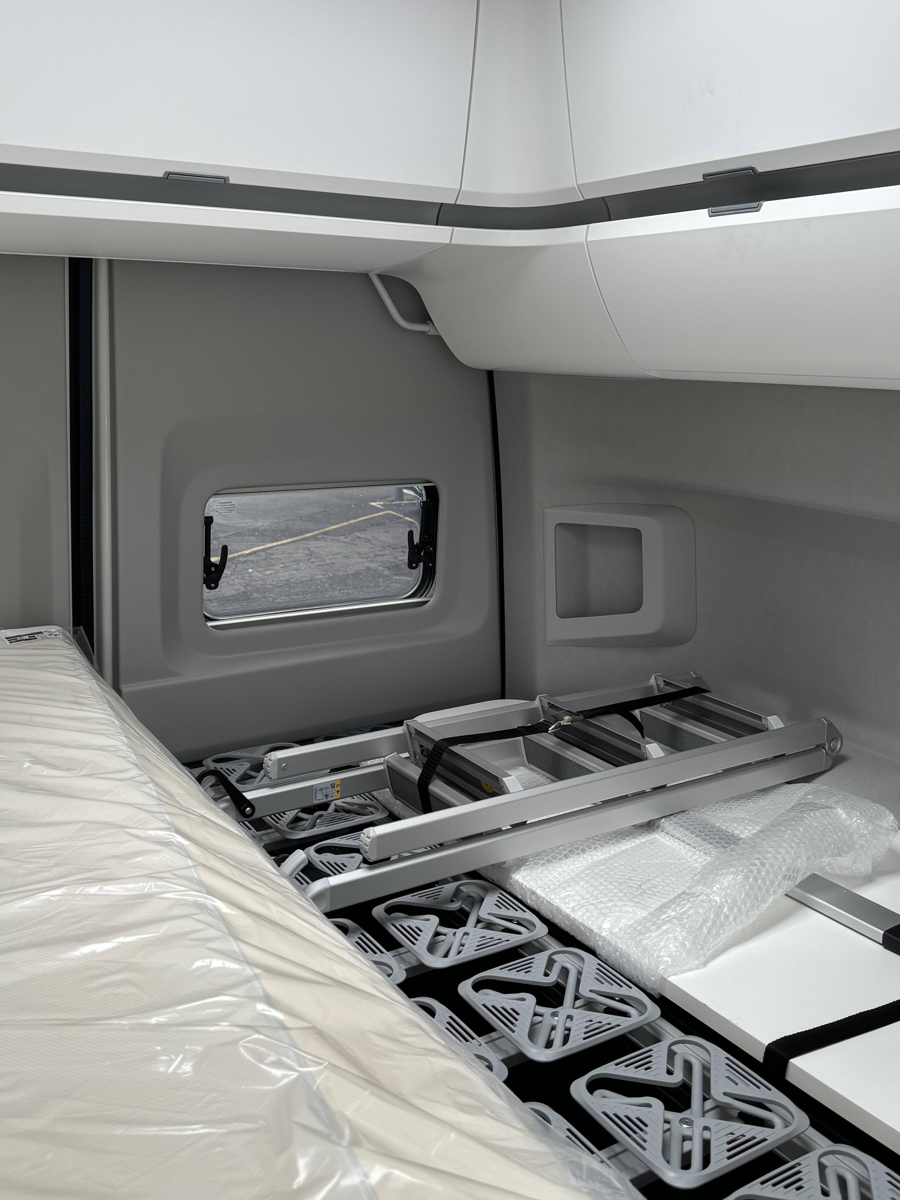 - Lit superposé au-dessus du poste de conduite, y compris échelle, éclairage et fenêtre de toit panoramique